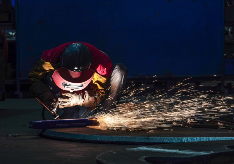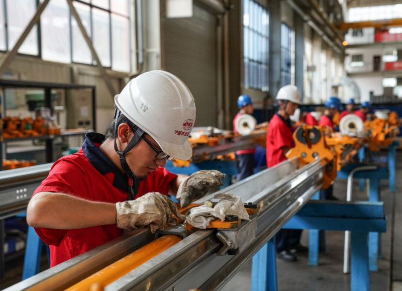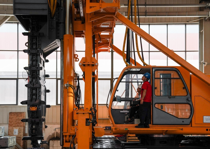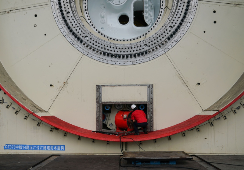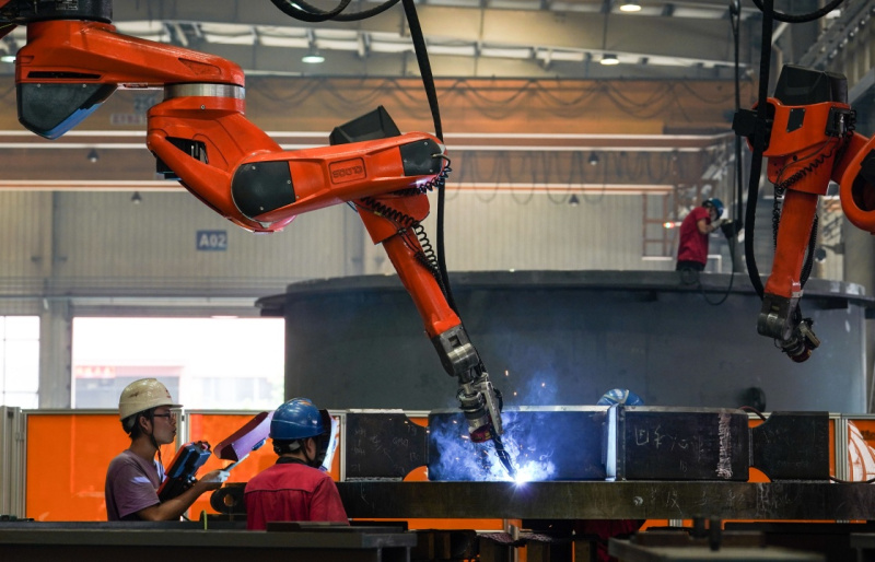 8月16日,工人在鐵建重工長沙第(di)一園區鑿巖臺車制造車間作業。