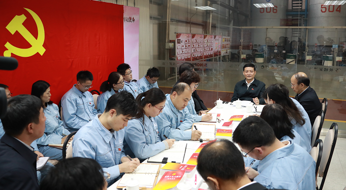 在全自動調(diao)合(he)車間的(de)(de)(de)(de)班組(zu)學(xue)(xue)習(xi)(xi)室,肖亞慶和(he)(he)來自基層(ceng)黨支(zhi)部的(de)(de)(de)(de)黨員同(tong)志圍(wei)坐在一(yi)起,結合(he)自己(ji)參(can)加大(da)(da)(da)會(hui)的(de)(de)(de)(de)切身感(gan)受和(he)(he)學(xue)(xue)習(xi)(xi)黨的(de)(de)(de)(de)十(shi)(shi)九大(da)(da)(da)報告的(de)(de)(de)(de)心得體(ti)會(hui),宣講黨的(de)(de)(de)(de)十(shi)(shi)九大(da)(da)(da)精神(shen)。座談會(hui)上,6位黨員代(dai)表分別結合(he)自身工作實際(ji)談學(xue)(xue)習(xi)(xi)體(ti)會(hui),其他(ta)同(tong)志也積極發言,肖亞慶邊(bian)聽(ting)邊(bian)記(ji),不時詢問情況(kuang)、作出解答,現(xian)場氣(qi)氛(fen)十(shi)(shi)分熱烈。肖亞慶說,跟同(tong)志們深入交流(liu)后很(hen)受啟(qi)發、很(hen)有收獲。黨的(de)(de)(de)(de)十(shi)(shi)九大(da)(da)(da)取(qu)得了(le)一(yi)系(xi)列重(zhong)(zhong)大(da)(da)(da)成果,提出了(le)一(yi)系(xi)列重(zhong)(zhong)大(da)(da)(da)科學(xue)(xue)論(lun)斷,明確(que)了(le)一(yi)系(xi)列重(zhong)(zhong)大(da)(da)(da)戰略(lve)舉措(cuo),把黨的(de)(de)(de)(de)十(shi)(shi)九大(da)(da)(da)精神(shen)學(xue)(xue)習(xi)(xi)好(hao)(hao)、貫徹好(hao)(hao)、落實好(hao)(hao)是當前和(he)(he)今后一(yi)個時期首要的(de)(de)(de)(de)政(zheng)治任務。中(zhong)(zhong)國石化黨組(zu)認真貫徹黨中(zhong)(zhong)央部署和(he)(he)國資(zi)委要求,采取(qu)多種形式推進(jin)(jin)黨的(de)(de)(de)(de)十(shi)(shi)九大(da)(da)(da)精神(shen)進(jin)(jin)基層(ceng)、到一(yi)線,取(qu)得了(le)很(hen)好(hao)(hao)的(de)(de)(de)(de)效(xiao)果。