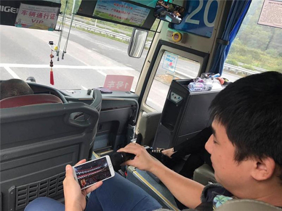中化藍天市場部員工在出差途中觀看十九大開幕式直播
