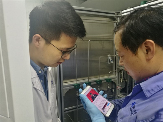 中化藍天下屬浙江省化工研究院的科研人員在科研間隙收看十九大開幕式直播