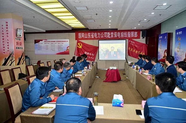 國網山東電力赴京保電前線指揮部人員集中收看直播。