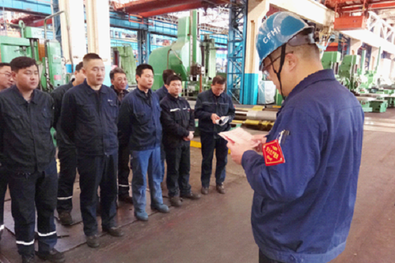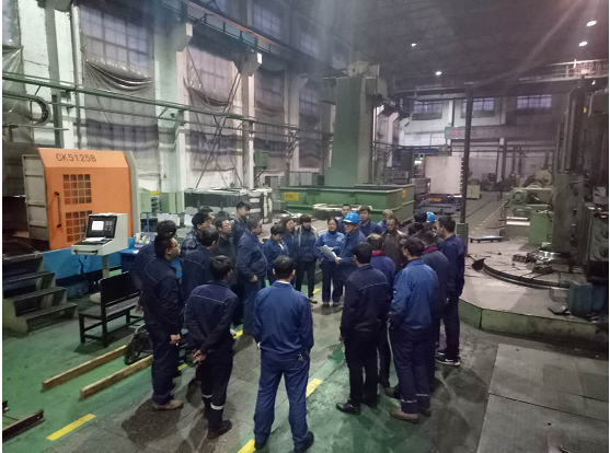 中國一重重型裝備事業部中型裝備制造廠有關領導在生產現場為機床操作者解讀十九大報告,并同大家交流十九大學習體會