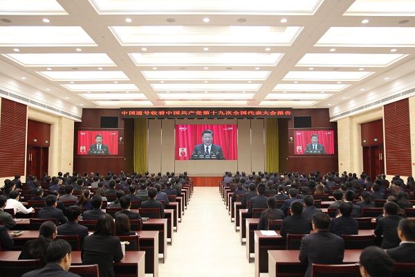 黨(dang)(dang)(dang)的(de)(de)十九(jiu)(jiu)(jiu)(jiu)大(da)(da)(da)召(zhao)開(kai)(kai)前夕,按照(zhao)國(guo)資(zi)委黨(dang)(dang)(dang)委的(de)(de)統(tong)一部(bu)(bu)(bu)署(shu),中(zhong)(zhong)國(guo)通(tong)號(hao)(hao)黨(dang)(dang)(dang)委專(zhuan)門發布《關(guan)于(yu)組(zu)(zu)織收(shou)聽收(shou)看(kan)黨(dang)(dang)(dang)的(de)(de)十九(jiu)(jiu)(jiu)(jiu)大(da)(da)(da)盛況的(de)(de)通(tong)知(zhi)》,要求(qiu)各(ge)(ge)級黨(dang)(dang)(dang)組(zu)(zu)織和(he)(he)全(quan)(quan)體(ti)黨(dang)(dang)(dang)員要進(jin)一步牢(lao)固樹(shu)立(li)“四(si)個(ge)意識”,把(ba)收(shou)聽收(shou)看(kan)黨(dang)(dang)(dang)的(de)(de)十九(jiu)(jiu)(jiu)(jiu)大(da)(da)(da)盛況作(zuo)為一項重(zhong)要政治(zhi)任(ren)務(wu)進(jin)行部(bu)(bu)(bu)署(shu)和(he)(he)落(luo)實(shi),切實(shi)組(zu)(zu)織好(hao)企業(ye)本部(bu)(bu)(bu)、實(shi)驗室、重(zhong)大(da)(da)(da)項目、重(zhong)點工程(cheng)以(yi)及(ji)生產車間的(de)(de)觀(guan)看(kan)活動(dong)(dong)(dong),展示中(zhong)(zhong)國(guo)通(tong)號(hao)(hao)黨(dang)(dang)(dang)員干(gan)部(bu)(bu)(bu)職工擼(lu)起袖子加油干(gan),喜(xi)迎黨(dang)(dang)(dang)的(de)(de)十九(jiu)(jiu)(jiu)(jiu)大(da)(da)(da)的(de)(de)飽滿精神(shen)狀態。黨(dang)(dang)(dang)的(de)(de)十九(jiu)(jiu)(jiu)(jiu)大(da)(da)(da)閉幕后(hou)第一時(shi)間,中(zhong)(zhong)國(guo)通(tong)號(hao)(hao)黨(dang)(dang)(dang)委迅速掀起學(xue)習(xi)熱潮(chao),先后(hou)兩次召(zhao)開(kai)(kai)黨(dang)(dang)(dang)委中(zhong)(zhong)心組(zu)(zu)擴大(da)(da)(da)學(xue)習(xi)會(hui)議,專(zhuan)題(ti)學(xue)習(xi)黨(dang)(dang)(dang)的(de)(de)十九(jiu)(jiu)(jiu)(jiu)大(da)(da)(da)報告(gao)(gao)、關(guan)于(yu)十八(ba)屆(jie)中(zhong)(zhong)央委員會(hui)報告(gao)(gao)的(de)(de)決(jue)議、關(guan)于(yu)中(zhong)(zhong)央紀律檢查委員會(hui)工作(zuo)報告(gao)(gao)的(de)(de)決(jue)議、關(guan)于(yu)《中(zhong)(zhong)國(guo)共(gong)產黨(dang)(dang)(dang)章程(cheng)(修正案)》的(de)(de)決(jue)議等文(wen)件(jian)精神(shen)。專(zhuan)題(ti)學(xue)習(xi)黨(dang)(dang)(dang)章新內容、新觀(guan)點、新思想,對(dui)全(quan)(quan)系(xi)統(tong)學(xue)習(xi)宣傳十九(jiu)(jiu)(jiu)(jiu)大(da)(da)(da)精神(shen)進(jin)行再(zai)安排、再(zai)部(bu)(bu)(bu)署(shu)、再(zai)動(dong)(dong)(dong)員,要求(qiu)各(ge)(ge)級黨(dang)(dang)(dang)組(zu)(zu)織統(tong)籌安排,精心謀劃,做(zuo)到按照(zhao)國(guo)資(zi)委黨(dang)(dang)(dang)委提出(chu)的(de)(de)組(zu)(zu)織領(ling)導、學(xue)習(xi)培訓、宣傳引導、督(du)查指導和(he)(he)推動(dong)(dong)(dong)工作(zuo)“五個(ge)到位”。要求(qiu)全(quan)(quan)體(ti)黨(dang)(dang)(dang)員干(gan)部(bu)(bu)(bu)學(xue)以(yi)致(zhi)用,以(yi)學(xue)促做(zuo),以(yi)學(xue)促變,推動(dong)(dong)(dong)企業(ye)做(zuo)強做(zuo)優做(zuo)大(da)(da)(da),加快向(xiang)具有(you)全(quan)(quan)球競(jing)爭力的(de)(de)世(shi)界一流(liu)企業(ye)邁進(jin)。