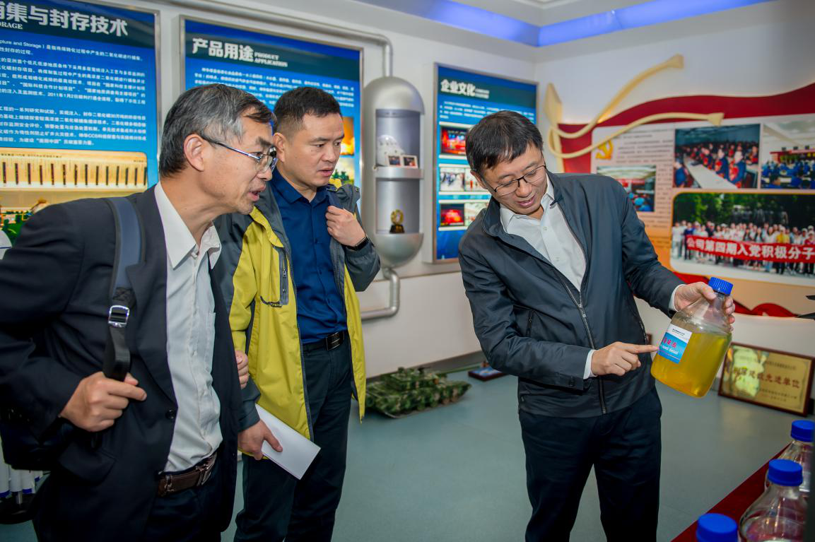 國家能源集團煤制油化工公司黨委副書記、總經理閆國春向媒體記者介紹煤直接液化產品
