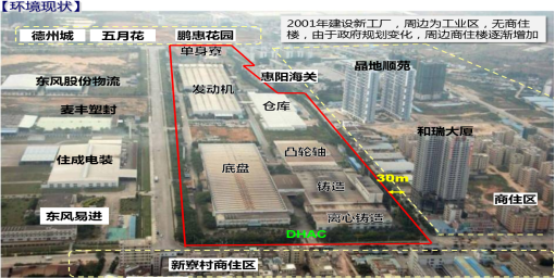 2001年前,公司(si)周(zhou)(zhou)邊(bian)為工業用地,無商(shang)住(zhu)樓(lou)(lou),由于政府規劃的(de)(de)(de)變更,公司(si)周(zhou)(zhou)邊(bian)商(shang)住(zhu)樓(lou)(lou)逐漸增(zeng)多。而公司(si)與最近的(de)(de)(de)商(shang)住(zhu)樓(lou)(lou)(和瑞(rui)大(da)(da)廈)的(de)(de)(de)廢氣(qi)類衛生(sheng)(sheng)距(ju)離僅30m,不滿(man)足法規要求(≥400m)。因此,公司(si)產(chan)(chan)生(sheng)(sheng)的(de)(de)(de)臭氣(qi)未來得(de)及有效(xiao)擴散就達到居(ju)民(min)區,影響周(zhou)(zhou)邊(bian)居(ju)民(min)及單(dan)位(wei)的(de)(de)(de)生(sheng)(sheng)活(huo)與工作,導(dao)致公司(si)2012年~2014年間累計(ji)受到52起投訴(su),公司(si)面臨(lin)的(de)(de)(de)的(de)(de)(de)環境(jing)風險(xian)逐漸增(zeng)大(da)(da)。為減少臭氣(qi)對(dui)周(zhou)(zhou)邊(bian)單(dan)位(wei)和居(ju)民(min)的(de)(de)(de)影響,確保公司(si)正常生(sheng)(sheng)產(chan)(chan)經營,研制(zhi)一套高效(xiao)的(de)(de)(de)鑄造臭氣(qi)處理裝置(zhi)成為公司(si)研究的(de)(de)(de)重點項目。