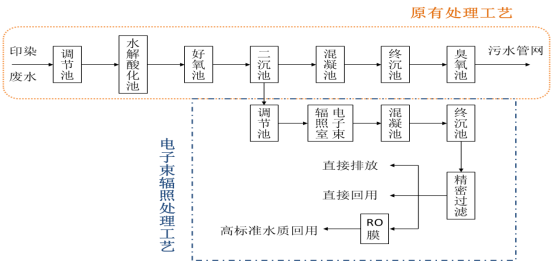 經(jing)過(guo)對(dui)不同(tong)(tong)印染產品和各時(shi)間段的廢水進(jin)行反復驗證,結果(guo)顯示(shi)電子束輻照技(ji)術(shu)對(dui)印染廢水深(shen)度處(chu)理具有顯著效果(guo),出水水質穩定。較原處(chu)理工藝只能達到接(jie)入城市污水處(chu)理廠(chang)的納管標準相(xiang)比,新技(ji)術(shu)可達到直(zhi)接(jie)排放(fang)標準要求,同(tong)(tong)時(shi)降(jiang)低廢水處(chu)置費用1.4元/噸。
