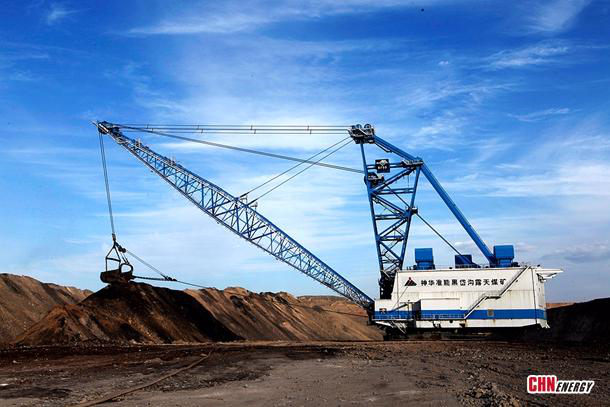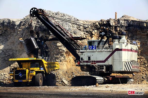 “電鏟(chan)的鏟(chan)容量是55立方米,一鏟(chan)挖煤近(jin)100噸,礦(kuang)用卡(ka)車的最大載(zai)重量達400噸,按照兩(liang)礦(kuang)正常生產(chan)(chan)能力,一天的產(chan)(chan)量在20多萬(wan)噸左右”,黑岱溝(gou)露天煤礦(kuang)調度室值班(ban)主(zhu)任岳建軍自豪地說。
