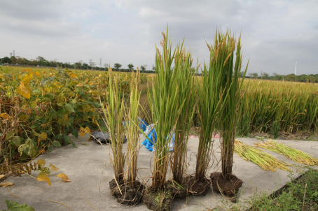 應用案例1:水稻(dao)種植(zhi)中使用含硅(gui)肥(fei)(fei)(fei)料產(chan)品,抗(kang)倒伏性能顯(xian)(xian)著提升(圖(tu)2,左為未(wei)使用,右為施含硅(gui)肥(fei)(fei)(fei)料產(chan)品),產(chan)量(圖(tu)3,自左向右,分(fen)別(bie)為未(wei)施肥(fei)(fei)(fei)、施普通復(fu)混肥(fei)(fei)(fei)、施含硅(gui)復(fu)混肥(fei)(fei)(fei))和稻(dao)米品質提高明顯(xian)(xian)。水稻(dao)產(chan)量及稻(dao)米品質檢測數據見(jian)表1、2。