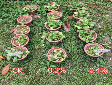 應用案例2:重金(jin)屬(shu)污染酸性土壤中小青(qing)(qing)菜種植試(shi)驗(圖(tu)4,自左向右根據土壤重量(liang)添加含硅(gui)肥料(liao)(liao)),使用含硅(gui)肥料(liao)(liao)后,小青(qing)(qing)菜的長勢明顯(xian)好轉。小青(qing)(qing)菜的產量(liang)及重金(jin)屬(shu)含量(liang)檢測數據見表(biao)3和表(biao)4。