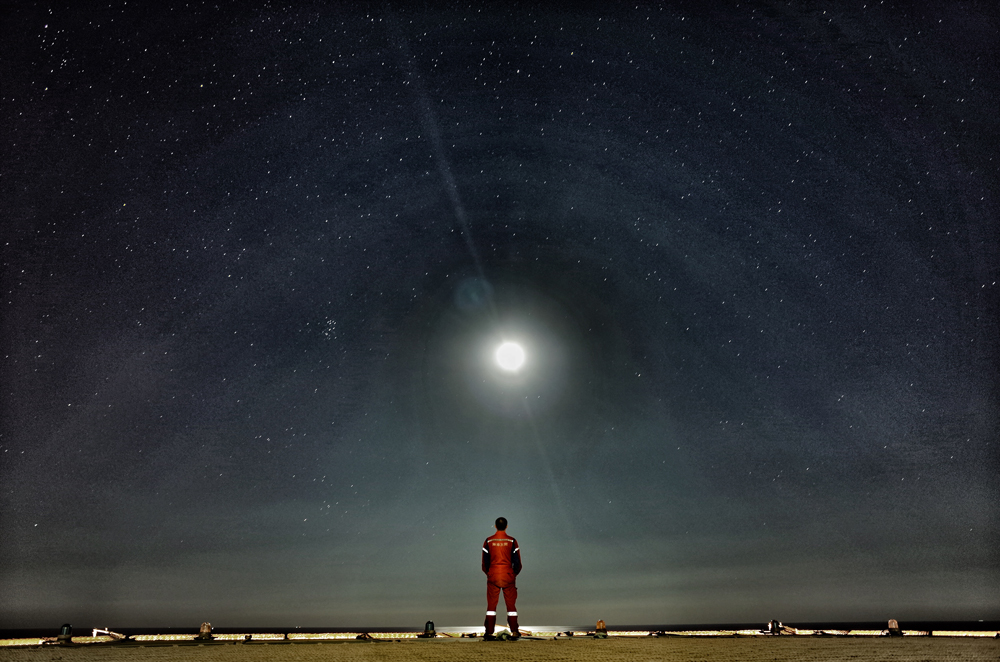 海上石油平臺的星空明月夜