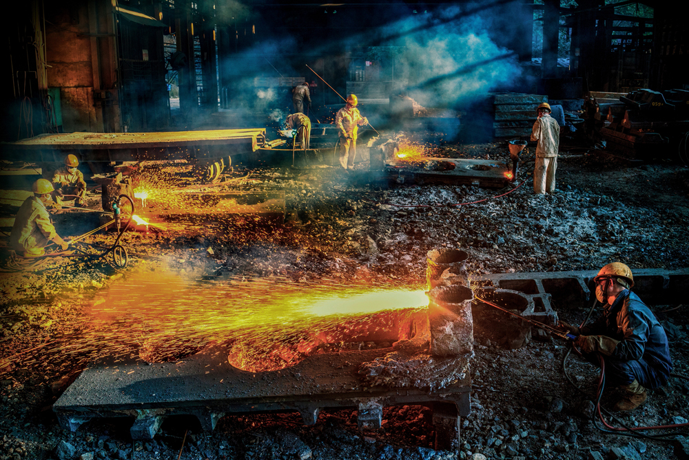 作品說明:在攀鋼機制(zhi)鑄(zhu)造公(gong)司(si)空(kong)曠的(de)(de)車(che)間(jian)里,弧光驟然,飛(fei)花疊獻,似(si)蘭,似(si)菊,一道(dao)道(dao)弧光刺向蒼穹,一朵(duo)朵(duo)焊花竟相(xiang)爭艷(yan),一名名焊工額頭(tou)揮汗(han)賽雨露,肆意飛(fei)濺(jian)的(de)(de)場(chang)景讓灰(hui)暗的(de)(de)車(che)間(jian)瞬(shun)間(jian)沸騰(teng)。