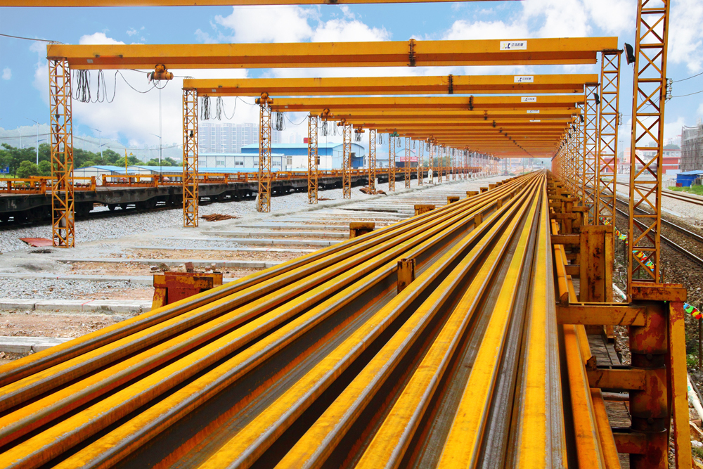 作品說明:由中(zhong)國中(zhong)鐵(tie)七局(ju)集團參建的佛肇城際鐵(tie)路第一列500米長(chang)鋼軌進場。