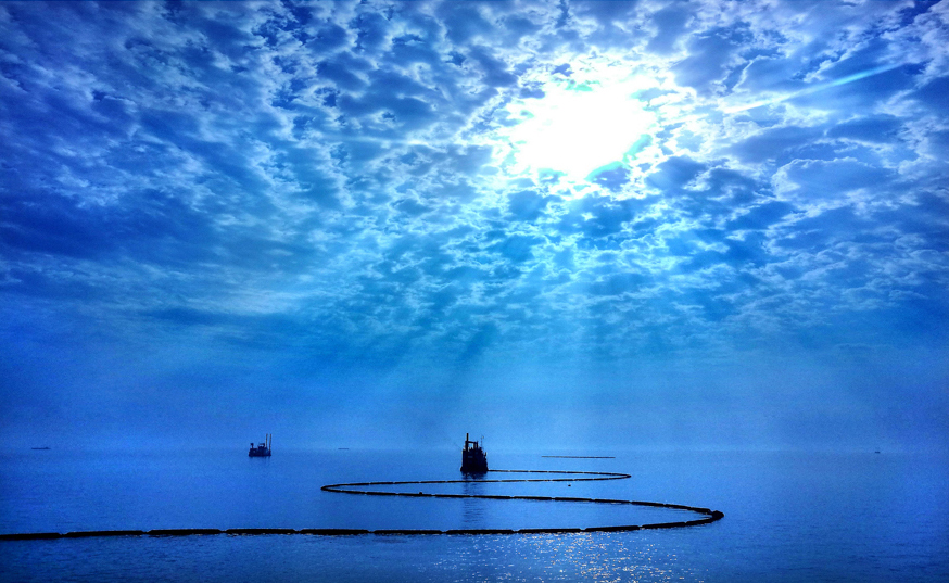 作品說明:中交疏浚所(suo)屬廣航(hang)局絞吸船“力龍”和(he)“軒(xuan)龍”在科威特LNG項目(mu)進行吹填作(zuo)業。