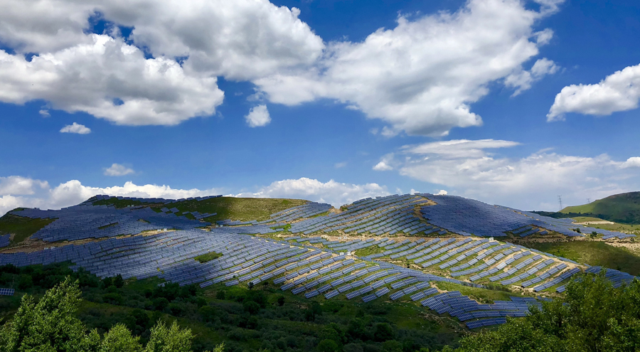 作品說明:據國(guo)家(jia)能源局統計數據顯示,截至今年6月底,我國(guo)光(guang)(guang)伏發電裝機容量達到(dao)15451萬(wan)千瓦(wa)。圖(tu)為(wei):地處河北省張家(jia)口境內的(de)光(guang)(guang)伏電場。