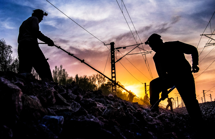 作品說明:鐵路部(bu)門為了減少影響列車(che)的運行(xing)(xing),大部(bu)分作(zuo)業都是(shi)在夜間進行(xing)(xing)。這(zhe)張照片是(shi)2018年4月20日早(zao)晨7點(dian)拍攝,真實記錄鐵路工人夜間施工感人的勞(lao)動場面。