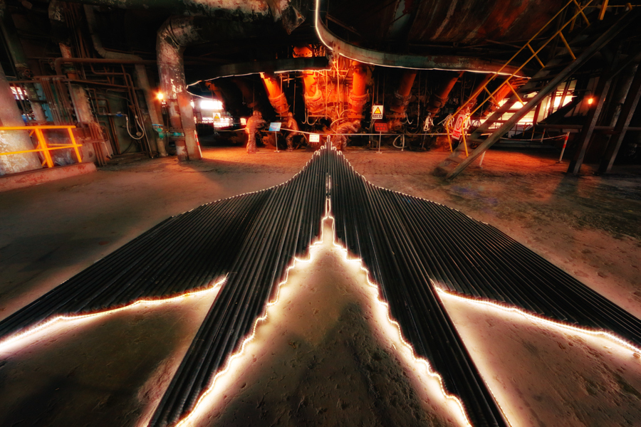 作品說明:2013年11月,在首鋼(gang)二號高爐拍攝,由廢鋼(gang)材(cai)搭建的雕塑《飛翔的首鋼(gang)》。
