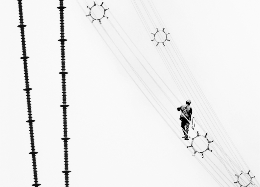 作品說明:2014年9月27日,拍攝于麗(li)水1000KV浙南站,電(dian)力工人正(zheng)在(zai)檢查特高壓線路(lu)。