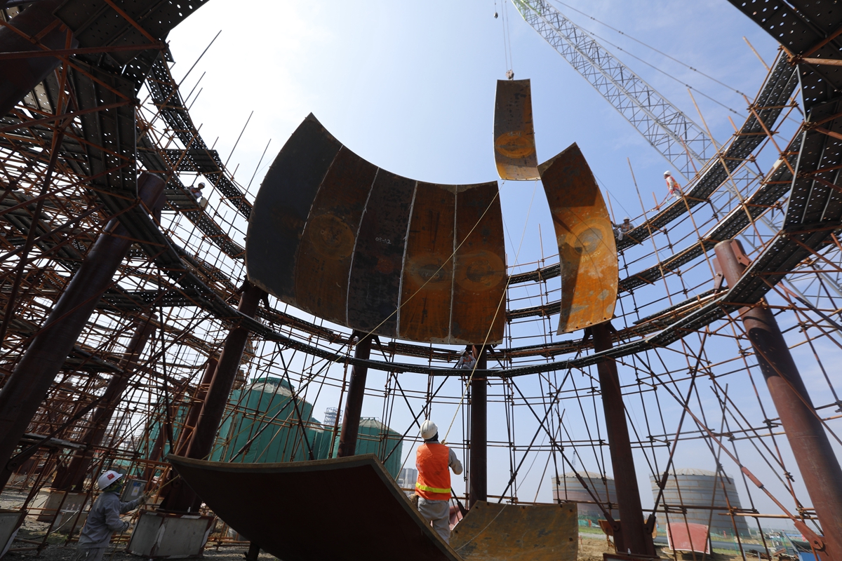 作品說明:球罐是化工(gong)企業的常見存儲設備,作為壓(ya)力容器,對(dui)材質(zhi)和(he)建(jian)造質(zhi)量的要求都很高,建(jian)造難度(du)也較大,在建(jian)造工(gong)人巧手的“縫制”下,一臺(tai)臺(tai)球罐逐漸(jian)成型。