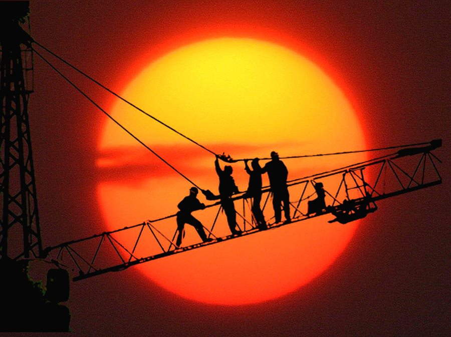 作品說明:忙(mang)碌的(de)身影,火熱(re)的(de)勞動場面(mian)。此幅作品拍攝于2010年5月,地點是白音華金山發電有(you)限(xian)公(gong)司火力(li)發電機組建設(she)工地。