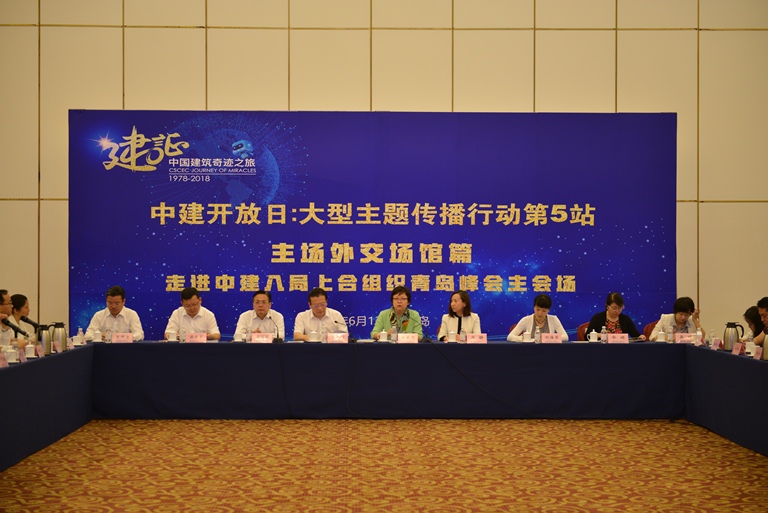 中(zhong)國(guo)建(jian)筑舉辦(ban)上(shang)合組織青(qing)島峰會主會場新聞(wen)發布會,來(lai)自《人民日(ri)報》、新華社(she)、《光明(ming)日(ri)報》《經濟日(ri)報》《科(ke)技日(ri)報》、中(zhong)國(guo)新聞(wen)社(she)以及北京電(dian)視(shi)臺(tai)(tai)(tai)、上(shang)海電(dian)視(shi)臺(tai)(tai)(tai)、山東電(dian)視(shi)臺(tai)(tai)(tai)、青(qing)島電(dian)視(shi)臺(tai)(tai)(tai)等30家(jia)媒體(ti)齊聚(ju)青(qing)島,共同見證中(zhong)國(guo)建(jian)筑大國(guo)工程建(jian)設的(de)奇跡之旅。