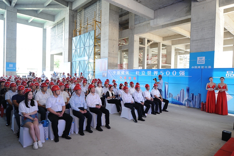 中建(jian)六局中建(jian)中心寫字樓封(feng)頂儀式(shi)現場