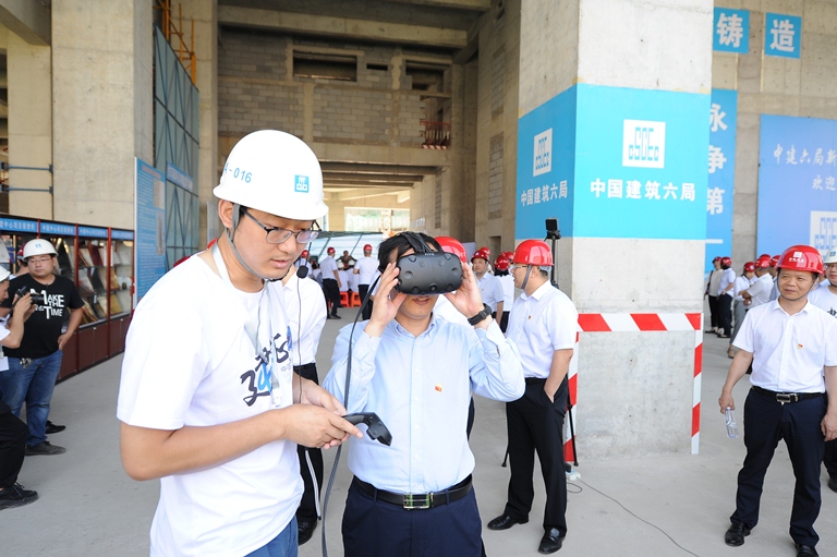 在中(zhong)建六局中(zhong)建中(zhong)心(xin)項目活動(dong)現場,與會人員體(ti)驗VR,感(gan)受(shou)建筑新科技(ji)