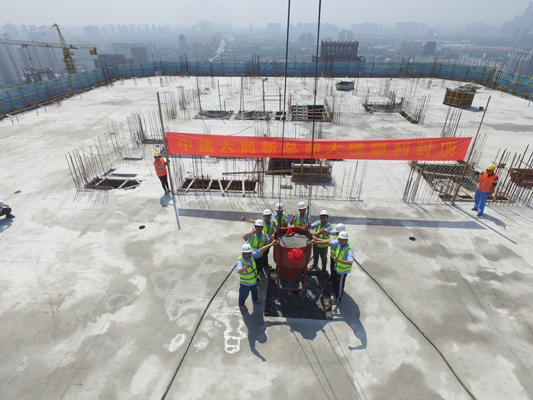 中建六局中建中心(xin)寫字樓澆筑最后一方混凝(ning)土(tu),迎來封頂(ding)時刻