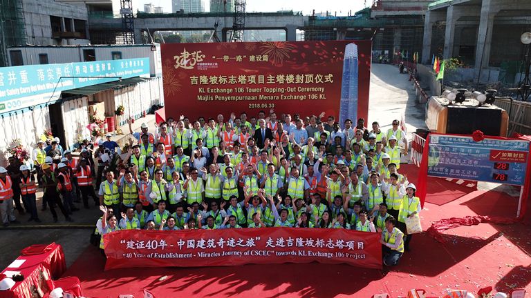 2018年(nian)(nian)6月30日,“建證(zheng)40年(nian)(nian)——中國建筑奇跡(ji)之旅”大型主題傳播行動第9站來(lai)到馬(ma)來(lai)西亞吉隆(long)坡標志(zhi)塔項(xiang)目,與來(lai)自吉隆(long)坡、新山、印尼等(deng)地的工程師(shi)、設計師(shi)、外(wai)籍工人、大學生一起(qi),見證(zheng)塔冠結構封頂(ding)。