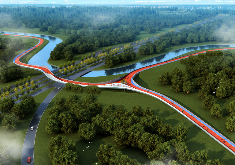 所建橋成形面能滿足舉辦大型國際自行車、馬拉(la)松(song)等大型賽事賽道要求(qiu)標準(zhun),且契合城市(shi)慢行交通對(dui)舒(shu)適(shi)性、美觀性、綠色生態(tai)發展的理念。