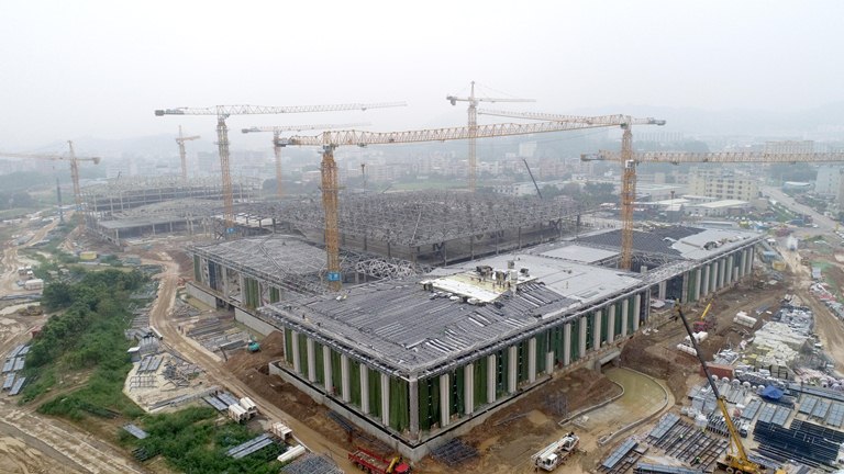 要打造(zao)(zao)這(zhe)樣獨特造(zao)(zao)型的(de)(de)(de)(de)(de)建筑,必須要創(chuang)(chuang)新(xin)技術。項目(mu)經過討論(lun)研究(jiu)后決(jue)定采(cai)用液壓同(tong)步整體提(ti)升(sheng)的(de)(de)(de)(de)(de)技術,“這(zhe)就好比用一(yi)個(ge)巨人之手,把已(yi)經在(zai)地(di)面(mian)組裝(zhuang)好的(de)(de)(de)(de)(de)連廊(lang)直(zhi)接提(ti)升(sheng)到高空。”項目(mu)經理朱早孫解釋這(zhe)項新(xin)技術。不(bu)同(tong)于(yu)過去小(xiao)體量(liang)的(de)(de)(de)(de)(de)低(di)空提(ti)升(sheng),這(zhe)次體量(liang)和(he)高度(du)都超乎尋常,為了(le)確(que)保萬(wan)無(wu)一(yi)失,項目(mu)引入(ru)(ru)BIM技術,通(tong)過電腦模擬(ni)了(le)整套施工(gong)(gong)流程,確(que)保提(ti)升(sheng)精準度(du)。雖(sui)然今天BIM技術已(yi)經推廣普及,而在(zai)2013年,用BIM還是新(xin)鮮的(de)(de)(de)(de)(de)探(tan)索。在(zai)深圳人看來,創(chuang)(chuang)新(xin)已(yi)是一(yi)種習慣,不(bu)只(zhi)是理念、技術和(he)實際(ji)行動,更是一(yi)種文(wen)化(hua)新(xin)生(sheng)態(tai),融入(ru)(ru)到深圳人的(de)(de)(de)(de)(de)血液和(he)骨子(zi)里,這(zhe)對生(sheng)在(zai)深圳、長在(zai)深圳的(de)(de)(de)(de)(de)小(xiao)伙兒黃嘉民來說也不(bu)例外(wai)。剛剛畢業一(yi)年的(de)(de)(de)(de)(de)他是坪(ping)山會(hui)(hui)展中(zhong)心的(de)(de)(de)(de)(de)一(yi)名技術員(yuan),他所在(zai)的(de)(de)(de)(de)(de)項目(mu)是中(zhong)建二局在(zai)坪(ping)山區(qu)的(de)(de)(de)(de)(de)一(yi)次創(chuang)(chuang)新(xin)嘗試。作為該區(qu)首個(ge) EPC裝(zhuang)配式項目(mu)正在(zai)創(chuang)(chuang)造(zao)(zao)新(xin)時(shi)代(dai)的(de)(de)(de)(de)(de)“深圳速度(du)”——占地(di)8.7萬(wan)平方米的(de)(de)(de)(de)(de)會(hui)(hui)展中(zhong)心建設工(gong)(gong)期僅8個(ge)月,比同(tong)類項目(mu)工(gong)(gong)期快了(le)3倍!