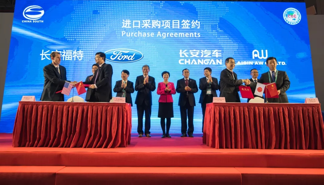 東航(hang)集團一(yi)天之內先后與羅羅、CAE、埃克森美孚(fu)、殼牌、法(fa)荷航(hang)、GE、CFM國(guo)際(ji)、霍尼韋爾、穆格、世紀航(hang)娛等全(quan)球(qiu)合(he)作(zuo)伙(huo)伴簽訂合(he)約。在“中央企(qi)業國(guo)際(ji)合(he)作(zuo)論(lun)壇”上,東航(hang)與英國(guo)羅羅公(gong)司簽署了(le)遄達XWB發動機(ji)及長期維(wei)護協議(yi),該(gai)協議(yi)是首屆(jie)進博會(hui)最大的民(min)用航(hang)空訂單之一(yi)。當天下(xia)午(wu),東航(hang)又與來自新加坡、法(fa)國(guo)、美國(guo)、加拿大等國(guo)家和(he)地(di)區(qu)的多家企(qi)業簽署了(le)9項采購協議(yi),涉(she)及航(hang)空發動機(ji)采購、發動機(ji)包(bao)修、航(hang)材包(bao)修、飛(fei)行(xing)模(mo)擬(ni)機(ji)、航(hang)油(you)供(gong)應、機(ji)上娛樂設施(shi)等。