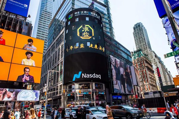 2018年世界品牌(pai)日,”淮鹽“品牌(pai)榮登美國納(na)斯達克(ke)廣(guang)場(chang)”全球首屏“
