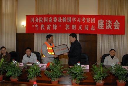 座談會上,曾堅同志代表國務院國資委直屬機關黨委、直屬機關郭明義愛心團隊向鞍鋼集團公司黨委表示感謝。他指出,鞍鋼被譽為中國鋼鐵工業的搖籃,不僅為我國國民經濟社會發展作出了重大貢獻,更積累了寶貴的精神財富,涌現出孟泰、王崇倫、雷鋒,以及郭明義等一大批英模,在他們身上集中體現了幾代鞍鋼人“創新、求實、拼爭、奉獻”的精神。這次到鞍鋼學習考察,與郭明義交流座談,就是以實際行動積極響應黨中央的號召和貫徹落實國務院國資委黨委要求,在深入開展踐行雷鋒精神、學習弘揚郭明義同志先進事跡活動中進一步打牢團員青年思想政治素質,立足本職,從點滴做起,從身邊做起,切實轉變工作作風,提升履職能力。他還向郭明義同志介紹了國務院國資委直屬機關郭明義愛心團隊開展學雷鋒學郭明義活動情況,并對下一步扎實推進郭明義愛心團隊活動常態化提出了五點要求:一要更加注重把握精神實質;二要更加注重創新活動載體;三要更加注重加強機制建設;四要更加注重營造良好氛圍;五要更加注重抓好活動結合。