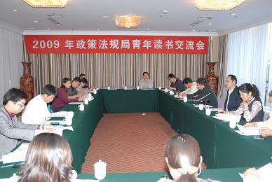 讀書活動是政策法規局加強青年學習工作的重要內容之一。局領導每年都向青年同志推薦優秀書籍,并召開讀書交流會。今年年初,法規局積極響應委機關團委2009年度“讀書、實踐、成才”主題活動,向全局36歲以下青年同志提出了讀書、思考、撰文的要求。局長周渝波同志繼去年推薦《激蕩三十年》和《法律的印跡》后,又為青年同志推薦了《貨幣戰爭》和《名家談哲學》。此次交流會就是重點圍繞這兩本書,由青年同志向全局同志暢談讀書的收獲與心得。
