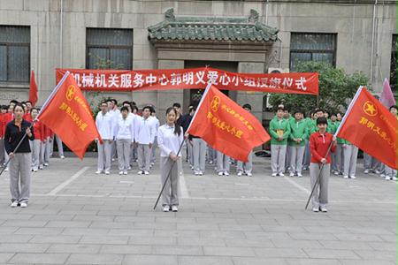 儀式上,郭明義愛心(xin)小組代表宋彩玲向中心(xin)團員青(qing)年(nian)發出踐行雷鋒精神倡議(yi)。中心(xin)全(quan)體(ti)團員青(qing)年(nian)參加了授(shou)旗儀式。