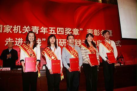 5月(yue)3日(ri)下(xia)午,中(zhong)央(yang)(yang)國(guo)家機關工委隆重舉行“中(zhong)央(yang)(yang)國(guo)家機關青(qing)年(nian)(nian)五(wu)(wu)四獎(jiang)章”表(biao)彰大會暨“根在(zai)基層 走進(jin)一線”調研實踐活動啟(qi)動儀式。我委財務監督與(yu)考核評價局(ju)企(qi)財一處處長王海琳同志(zhi)榮(rong)(rong)獲(huo)中(zhong)央(yang)(yang)國(guo)家機關青(qing)年(nian)(nian)五(wu)(wu)四獎(jiang)章標(biao)兵,外事局(ju)主任(ren)科員(yuan)謝暉同志(zhi)榮(rong)(rong)獲(huo)中(zhong)央(yang)(yang)國(guo)家機關青(qing)年(nian)(nian)五(wu)(wu)四獎(jiang)章。馬凱、楊衍(yan)銀等領(ling)導同志(zhi)為獲(huo)獎(jiang)代表(biao)頒獎(jiang),丹(dan)華同志(zhi)與(yu)獲(huo)獎(jiang)者所在(zai)單位(wei)及機關黨委負責(ze)同志(zhi)出(chu)席了大會。祝(zhu)國(guo)資委青(qing)年(nian)(nian)同志(zhi)們節(jie)日(ri)快樂,讓青(qing)春在(zai)為國(guo)資監管和中(zhong)央(yang)(yang)企(qi)業改革(ge)發(fa)展事業建功立業中(zhong)煥發(fa)出(chu)絢麗光彩,以(yi)優異的業績迎接(jie)黨的十八大勝利(li)召開!