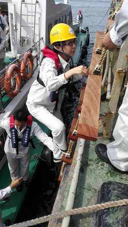 由于項(xiang)目接待(dai)營地(di)受限,調研團(tuan)不得不分成四個小(xiao)組。我(wo)(wo)和另外(wai)7位團(tuan)員(yuan)被(bei)分到(dao)了(le)負(fu)責沉管預制的桂山(shan)牛頭(tou)島。我(wo)(wo)們(men)(men)一行從珠(zhu)海乘坐了(le)近(jin)兩(liang)個小(xiao)時(shi)的輪船(chuan),在暈得快絕望的時(shi)候,船(chuan)靠岸了(le),展現在我(wo)(wo)們(men)(men)眼前是(shi)一座忙碌卻充滿(man)生活氣息的小(xiao)島。負(fu)責接待(dai)本(ben)(ben)組調研任務的Ⅲ工區二分區唐書(shu)記告訴我(wo)(wo)們(men)(men),這里原(yuan)本(ben)(ben)是(shi)座荒島,五年(nian)前,四航局先遣隊伍來到(dao)這里,用(yong)不到(dao)一年(nian)的時(shi)間,在島上(shang)蓋起了(le)辦公樓、宿舍樓、食堂等建筑,后(hou)來又修葺了(le)菜園子和活動廣場,搭起了(le)籃球架(jia)和乒乓球臺(tai),豐富了(le)原(yuan)本(ben)(ben)枯(ku)燥的生活。