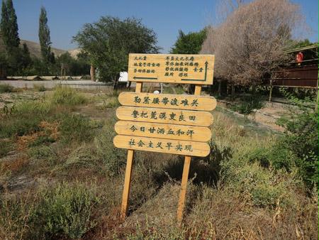 8月19日,我們驅車來到了152團10連保存完整的連隊舊址,這里現在已經建成了紅色旅游基地、愛國主義教育基地、影視拍攝基地,真實再現了上世紀50年代墾荒者初來時的情景。今天的我們不需要太多想象就能在腦海里臨摹出當日的情形:兵團人住在簡陋的“地窩子”里,用簡陋的勞動工具和戰天斗地的革命精神,無論烈日炎炎還是冰天雪地不辭勞苦,終于將鹽堿地開墾成為萬畝良田。我們坐在泥土澆筑的破舊禮堂上的硬木條凳,聆聽近60載的悲壯故事。是的,和平年代的墾荒生產,不亞于戰爭年代的浴血沙場。我們應記住那些放下武器屯墾戍邊的將士們,也不能忘記來自湖南、山東、上海的支邊女兵們,她們的青春和愛情獻給了邊疆,她們的故事永遠是兵團歷史中鮮活的一部分。