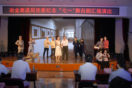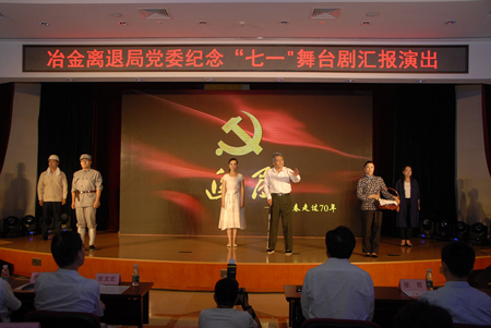 為紀念建(jian)黨(dang)(dang)94周(zhou)年(nian)、中國人民(min)抗日(ri)戰(zhan)爭和世界反(fan)法西斯戰(zhan)爭勝利70周(zhou)年(nian),7月20日(ri)下午,由(you)直(zhi)屬機(ji)關(guan)(guan)(guan)黨(dang)(dang)委(wei)(wei)(wei)、管(guan)理局(ju)黨(dang)(dang)委(wei)(wei)(wei)、冶(ye)金離退(tui)局(ju)黨(dang)(dang)委(wei)(wei)(wei)聯合主辦(ban),直(zhi)屬機(ji)關(guan)(guan)(guan)團委(wei)(wei)(wei)、管(guan)理局(ju)團委(wei)(wei)(wei)聯合承辦(ban)的舞臺情(qing)景劇《追尋——青春走(zou)過70年(nian)》,在委(wei)(wei)(wei)機(ji)關(guan)(guan)(guan)匯報演(yan)出(chu)。中央國家機(ji)關(guan)(guan)(guan)團工(gong)(gong)委(wei)(wei)(wei)有關(guan)(guan)(guan)負(fu)責同志(zhi),中央國家機(ji)關(guan)(guan)(guan)工(gong)(gong)委(wei)(wei)(wei)宣傳(chuan)部(bu)有關(guan)(guan)(guan)同志(zhi)蒞臨觀(guan)(guan)看演(yan)出(chu),直(zhi)屬機(ji)關(guan)(guan)(guan)黨(dang)(dang)委(wei)(wei)(wei)、管(guan)理局(ju)黨(dang)(dang)委(wei)(wei)(wei)、冶(ye)金離退(tui)局(ju)黨(dang)(dang)委(wei)(wei)(wei)負(fu)責同志(zhi),直(zhi)屬機(ji)關(guan)(guan)(guan)各單位黨(dang)(dang)組織宣傳(chuan)委(wei)(wei)(wei)員(yuan)、團組織負(fu)責人、新黨(dang)(dang)員(yuan)和入黨(dang)(dang)積極分子(zi)代(dai)表共200余人觀(guan)(guan)看了演(yan)出(chu)。