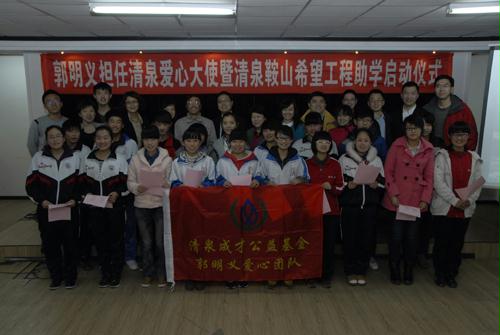 3月8日下(xia)午,“國資(zi)(zi)(zi)委直屬(shu)機關郭(guo)(guo)明義(yi)愛心(xin)團(tuan)隊”的(de)青(qing)年(nian)(nian)志(zhi)愿(yuan)者踏上了赴遼寧鞍山(shan)的(de)助(zhu)(zhu)學(xue)(xue)公益之旅(lv)。在陪(pei)同清泉(quan)基金工(gong)作人員實地走訪(fang)受(shou)資(zi)(zi)(zi)助(zhu)(zhu)學(xue)(xue)生家(jia)庭、參(can)觀(guan)鞍鋼集團(tuan)雷鋒(feng)(feng)紀念館后,“國資(zi)(zi)(zi)委直屬(shu)機關郭(guo)(guo)明義(yi)愛心(xin)團(tuan)隊”青(qing)年(nian)(nian)志(zhi)愿(yuan)者與受(shou)資(zi)(zi)(zi)助(zhu)(zhu)學(xue)(xue)生以及所在學(xue)(xue)校(xiao)輔導(dao)員、部分(fen)學(xue)(xue)生家(jia)長共同見證了郭(guo)(guo)明義(yi)擔任清泉(quan)愛心(xin)大使暨清泉(quan)鞍山(shan)希望工(gong)程(cheng)助(zhu)(zhu)學(xue)(xue)啟動(dong)儀(yi)式(shi),并與“當代雷鋒(feng)(feng)”郭(guo)(guo)明義(yi)同志(zhi)進行了面對(dui)面的(de)互動(dong)交流。