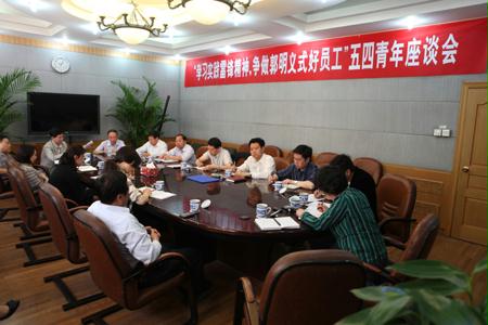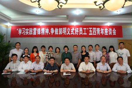 5月4日,紡織機關服務中心團總支為貫徹落實紡織機關服務中心黨委《關于開展學習實踐雷鋒精神,爭做郭明義式好員工活動的通知》(國資紡織服黨〔2012〕7號)的通知要求,組織召開“五四”青年學習交流座談會。中心主任倪居華、黨委書記徐偉和中心各黨支部(黨委)書記以及中心團總支委員、各團支部委員和青年代表共20余人參加了學習交流座談會。