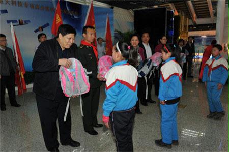 在航(hang)天城(cheng)會展中(zhong)(zhong)心(xin)(xin)展廳,孩(hai)子(zi)(zi)們(men)(men)第一次(ci)(ci)見(jian)到了(le)從(cong)前只有在電視上才(cai)能見(jian)到的(de)(de)(de)英雄航(hang)天員費俊龍,當(dang)費將(jiang)軍走進展廳的(de)(de)(de)時候,孩(hai)子(zi)(zi)們(men)(men)歡呼著(zhu),跳躍著(zhu),激(ji)動(dong)的(de)(de)(de)心(xin)(xin)情寫在了(le)紅(hong)撲撲的(de)(de)(de)小臉上,為英雄航(hang)天員獻(xian)(xian)上手(shou)中(zhong)(zhong)的(de)(de)(de)紅(hong)領巾和(he)鮮花,獻(xian)(xian)上一個個莊嚴的(de)(de)(de)少先隊(dui)隊(dui)禮,來表(biao)達他(ta)們(men)(men)對航(hang)天員叔(shu)叔(shu)崇高的(de)(de)(de)敬意(yi)和(he)無限的(de)(de)(de)敬仰之(zhi)情。費將(jiang)軍親(qin)切(qie)的(de)(de)(de)和(he)孩(hai)子(zi)(zi)們(men)(men)一一握(wo)手(shou)、問好,并鼓勵(li)孩(hai)子(zi)(zi)們(men)(men)要熱愛(ai)黨、熱愛(ai)人民(min)、熱愛(ai)偉(wei)大的(de)(de)(de)祖國,要勇敢、堅(jian)強,不怕困難,超(chao)越自(zi)我。珍惜現在的(de)(de)(de)學習條件和(he)所有人的(de)(de)(de)關心(xin)(xin)幫助,努力(li)學習,真(zhen)正成為中(zhong)(zhong)國特色社(she)會主(zhu)義事業的(de)(de)(de)合格(ge)建設者(zhe)和(he)可靠(kao)接班(ban)人!他(ta)在講話中(zhong)(zhong)表(biao)示通(tong)過這(zhe)次(ci)(ci)活動(dong)能夠為孩(hai)子(zi)(zi)們(men)(men)獻(xian)(xian)愛(ai)心(xin)(xin),積(ji)極履(lv)行社(she)會責(ze)任,非常(chang)有意(yi)義。費將(jiang)軍還(huan)和(he)國資委(wei)直屬機關黨委(wei)常(chang)務副書(shu)記(ji)曾堅(jian)、企業改革局局長白英姿、直屬機關工會主(zhu)席呂秋菊,以及中(zhong)(zhong)國航(hang)天科技(ji)集團公司五院黨委(wei)書(shu)記(ji)李開民(min)一起,把嶄新的(de)(de)(de)學習用品(pin)送到了(le)孩(hai)子(zi)(zi)們(men)(men)手(shou)中(zhong)(zhong)。