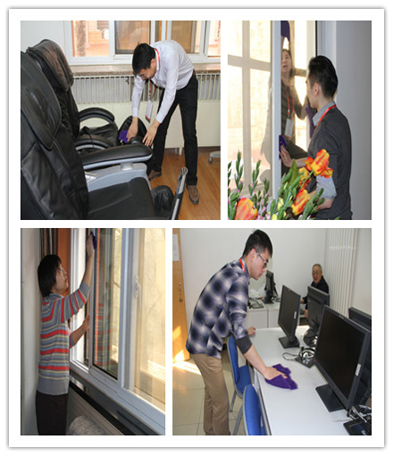 老(lao)干部(bu)活動站為保持室內光線(xian)充足(zu),窗(chuang)戶數量(liang)很多,且都是雙(shuang)層(ceng)玻璃(li),清理起來工(gong)作量(liang)很大(da),但大(da)家克服困難,仔仔細(xi)(xi)細(xi)(xi)地將窗(chuang)臺、窗(chuang)沿、玻璃(li)等反復擦(ca)洗(xi)。遇到(dao)玻璃(li)窄(zhai)小縫隙,大(da)家就(jiu)用細(xi)(xi)棍棒(bang)撐(cheng)著抹布去擦(ca);發現走廊內窗(chuang)與外(wai)窗(chuang)夾層(ceng)較寬,女(nv)志愿者(zhe)便站在(zai)夾層(ceng)內仔細(xi)(xi)清理邊邊角(jiao)角(jiao)。雖然(ran)頭上、手上、衣服上滿(man)是灰(hui)塵,但一想(xiang)到(dao)曾經為我們(men)打拼出(chu)現在(zai)幸福生(sheng)活的(de)(de)老(lao)同志們(men),能在(zai)自(zi)己(ji)打掃出(chu)來的(de)(de)干凈環境里,享受(shou)愉(yu)快的(de)(de)晚年生(sheng)活,大(da)家都由衷的(de)(de)感(gan)到(dao)欣慰(wei)與幸福。
