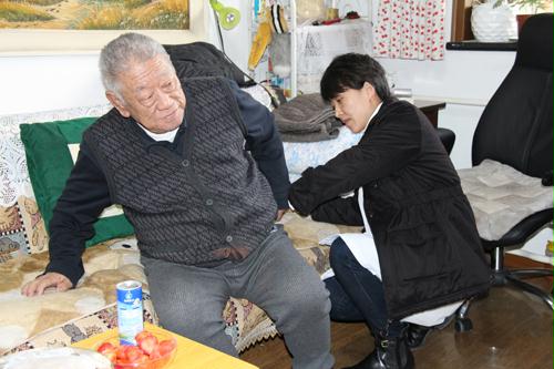 在(zai)92歲(sui)高齡的(de)(de)(de)(de)王楓挺老(lao)(lao)(lao)(lao)人(ren)家(jia)(jia)(jia)中(zhong),學雷(lei)鋒愛心(xin)(xin)(xin)志(zhi)愿(yuan)者們同老(lao)(lao)(lao)(lao)人(ren)聊(liao)天(tian)、傾(qing)心(xin)(xin)(xin)交(jiao)談,了解(jie)老(lao)(lao)(lao)(lao)人(ren)的(de)(de)(de)(de)生活和身體健(jian)康情況(kuang),認(ren)真聆聽(ting)老(lao)(lao)(lao)(lao)人(ren)講述(shu)年(nian)輕時期轟轟烈(lie)烈(lie)的(de)(de)(de)(de)革(ge)命(ming)故(gu)事(shi),感(gan)受老(lao)(lao)(lao)(lao)人(ren)飽經風霜(shuang)、親(qin)(qin)眼(yan)見(jian)證新中(zhong)國改革(ge)發展的(de)(de)(de)(de)喜悅(yue)心(xin)(xin)(xin)情,使大(da)家(jia)(jia)(jia)備(bei)受感(gan)動(dong)和鼓舞(wu);在(zai)老(lao)(lao)(lao)(lao)干(gan)部郭(guo)永蓮家(jia)(jia)(jia)中(zhong),在(zai)得知(zhi)郭(guo)老(lao)(lao)(lao)(lao)患尿毒癥行動(dong)十分不便的(de)(de)(de)(de)情況(kuang)后,門診部高揚(yang)、汝衛(wei)琴(qin)耐(nai)心(xin)(xin)(xin)細致地為郭(guo)老(lao)(lao)(lao)(lao)講解(jie)了一些醫療保健(jian)知(zhi)識,給予了郭(guo)老(lao)(lao)(lao)(lao)自我(wo)保健(jian)的(de)(de)(de)(de)健(jian)康指導(dao),老(lao)(lao)(lao)(lao)人(ren)非(fei)常感(gan)動(dong);在(zai)94歲(sui)高齡的(de)(de)(de)(de)劉(liu)贊平家(jia)(jia)(jia)中(zhong),愛心(xin)(xin)(xin)志(zhi)愿(yuan)者們同老(lao)(lao)(lao)(lao)人(ren)親(qin)(qin)切交(jiao)談,老(lao)(lao)(lao)(lao)人(ren)以自己的(de)(de)(de)(de)親(qin)(qin)身感(gan)受和獨特(te)見(jian)解(jie),諄諄教導(dao)年(nian)輕志(zhi)愿(yuan)者,要深刻理(li)解(jie)雷(lei)鋒同志(zhi)全心(xin)(xin)(xin)全意為人(ren)民服務的(de)(de)(de)(de)革(ge)命(ming)精(jing)神實質,繼承和發揚(yang)老(lao)(lao)(lao)(lao)一代“大(da)無(wu)畏”的(de)(de)(de)(de)革(ge)命(ming)傳統(tong),力爭在(zai)本職崗位上多(duo)做貢(gong)獻(xian)。